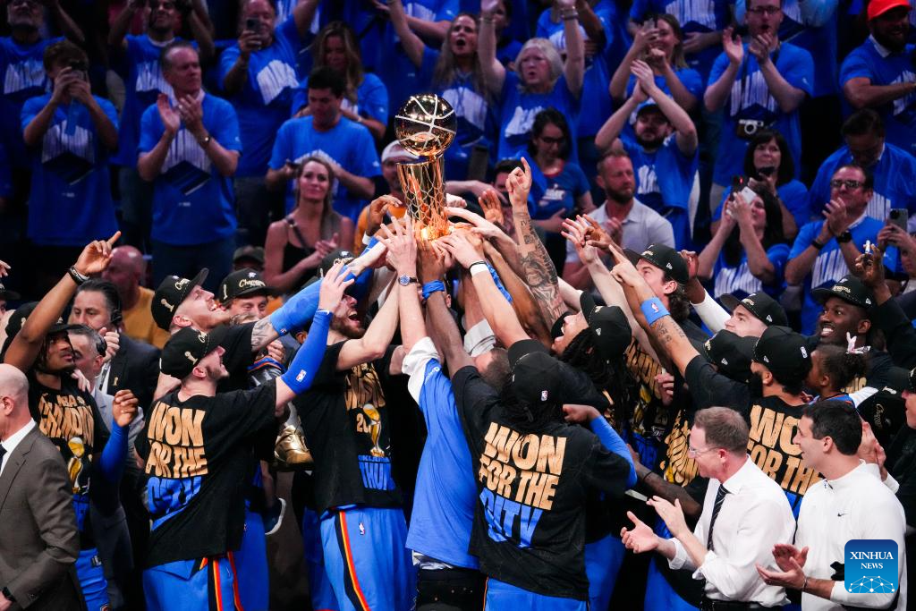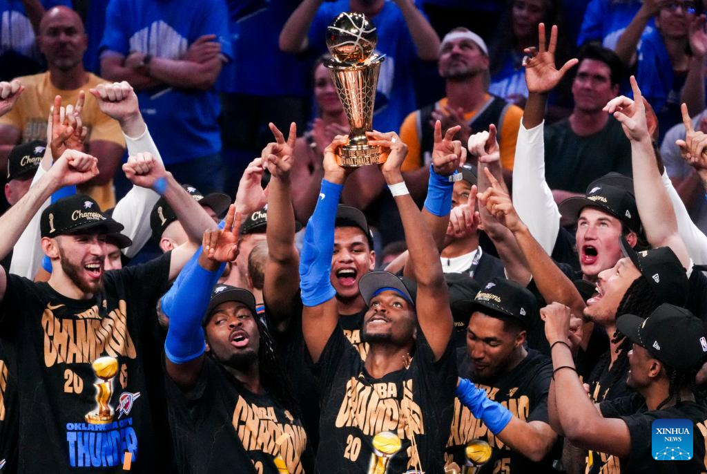 WASHINGTON, June 22 (Xinhua) -- The Oklahoma City Thunder claimed the 2024-2025 NBA championship after defeating the Indiana Pacers 103-91 in a decisive Game 7 of the Finals on Sunday, winning the best-of-seven series 4-3 to secure their first title since relocating to Oklahoma City in 2008.
