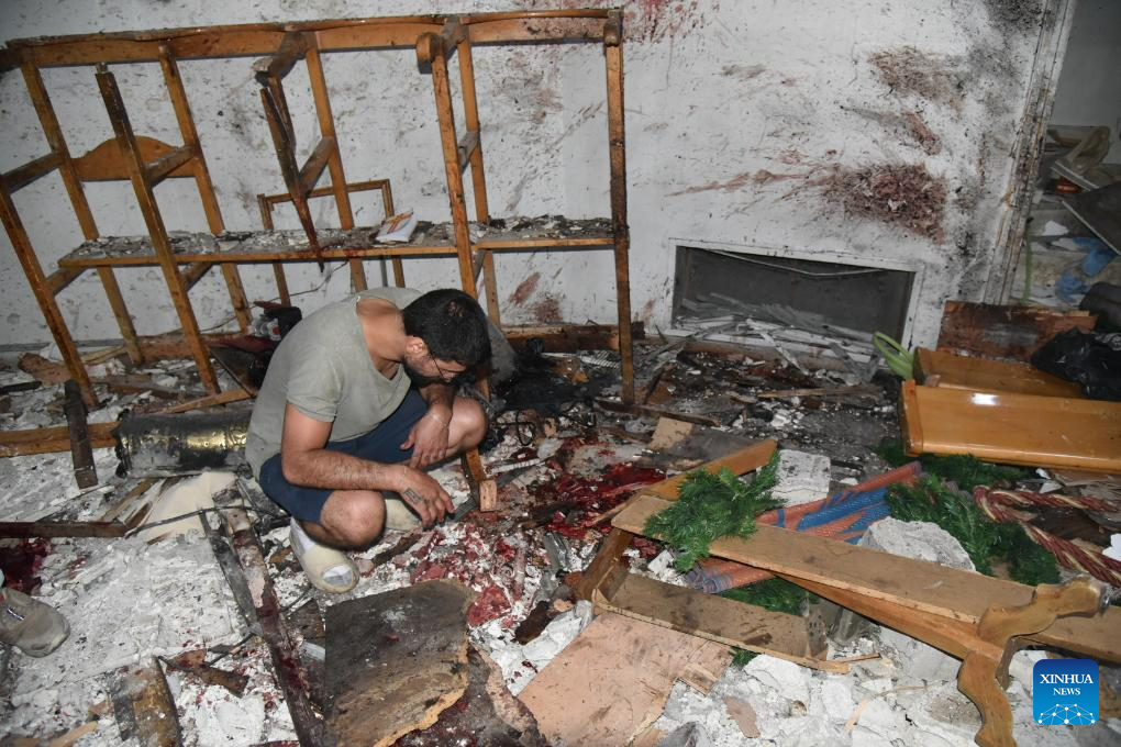 This photo shows the shattered courtyard of the Mar Elias Church in the Dweilaa district on the eastern outskirts of Damascus, Syria, on June 22, 2025. A suicide bomber stormed a crowded church in the Syrian capital Damascus during Sunday mass, opening fire on worshippers before detonating his explosives, killing at least 19 people and injuring dozens more, security sources and a monitoring group said. (Photo by Monsef Memari/Xinhua)