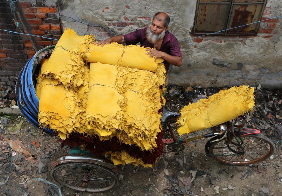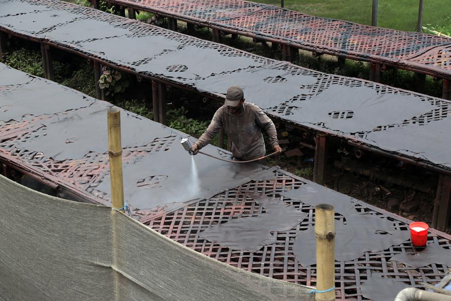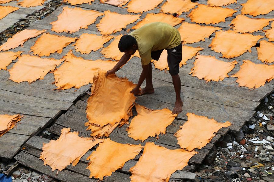 A worker processes leather at a tannery factory in Savar, on the outskirts of Dhaka, Bangladesh, June 21, 2025. (Xinhua)A worker processes leather at a tannery factory in Savar, on the outskirts of Dhaka, Bangladesh, June 21, 2025. (Xinhua)A worker processes leather at a tannery factory in Savar, on the outskirts of Dhaka, Bangladesh, June 21, 2025. (Xinhua)Workers display a piece of leather at a tannery factory in Savar, on the outskirts of Dhaka, Bangladesh, June 21, 2025. (Xinhua)A worker transports leather at a tannery factory in Savar, on the outskirts of Dhaka, Bangladesh, June 21, 2025. (Xinhua)■