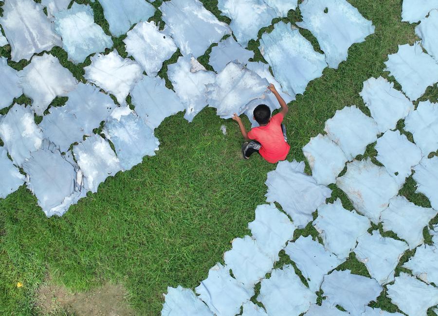 A worker processes leather at a tannery factory in Savar, on the outskirts of Dhaka, Bangladesh, June 21, 2025. (Xinhua)