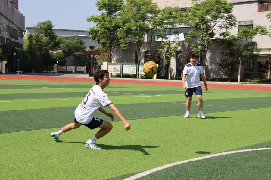 He, along with several other PE teachers, became the key players of the team. "It was something new, and I was curious to find out what it was," Jin recalled of his first encounter with the sport. "The field looks a bit like a football pitch, and the gameplay feels somewhat like volleyball. I gave it a try with a few colleagues, and it turned out to be a really exciting sport."
