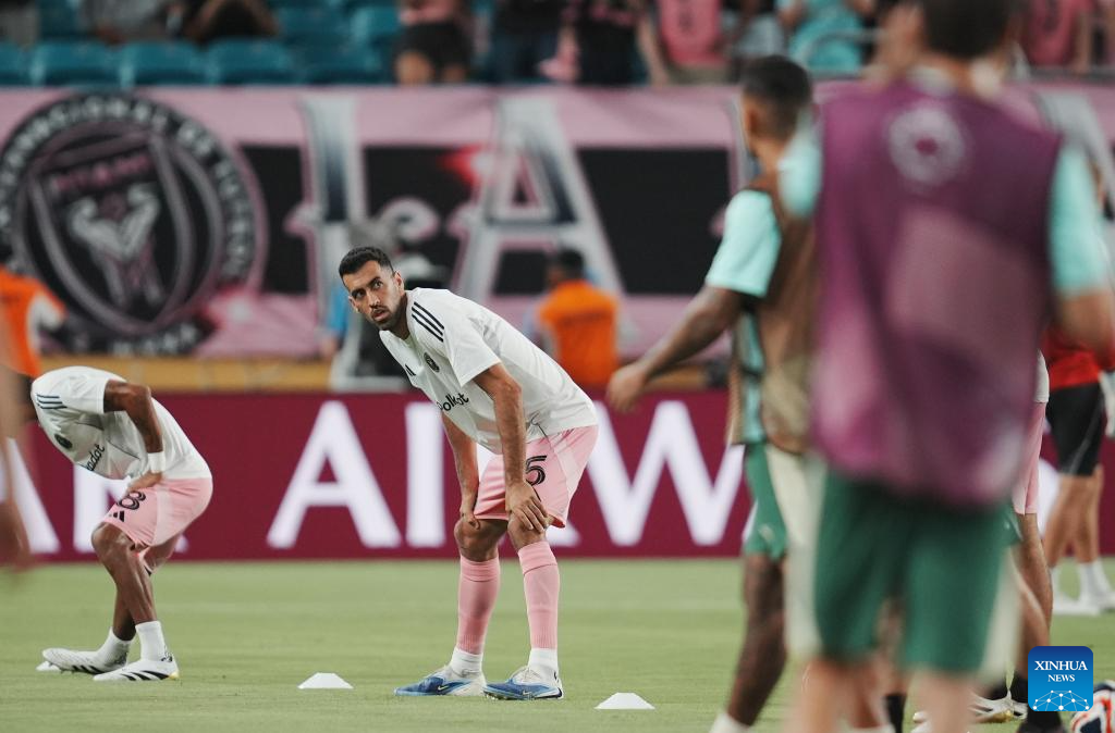 Inter Miami CF's Sergio Busquets warms up before the group A match between Inter Miami CF of the United States and Palmeiras of Brazil at the FIFA Club World Cup 2025 at the Hard Rock Stadium, Miami, the United States, June 23, 2025. (Xinhua/Huang Zongzhi)