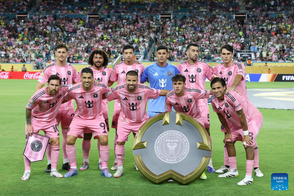 Starting players of Inter Miami CF pose for photos before the group A match between Inter Miami CF of the United States and Palmeiras of Brazil at the FIFA Club World Cup 2025 at the Hard Rock Stadium, Miami, the United States, June 23, 2025. (Xinhua/Li Ming)