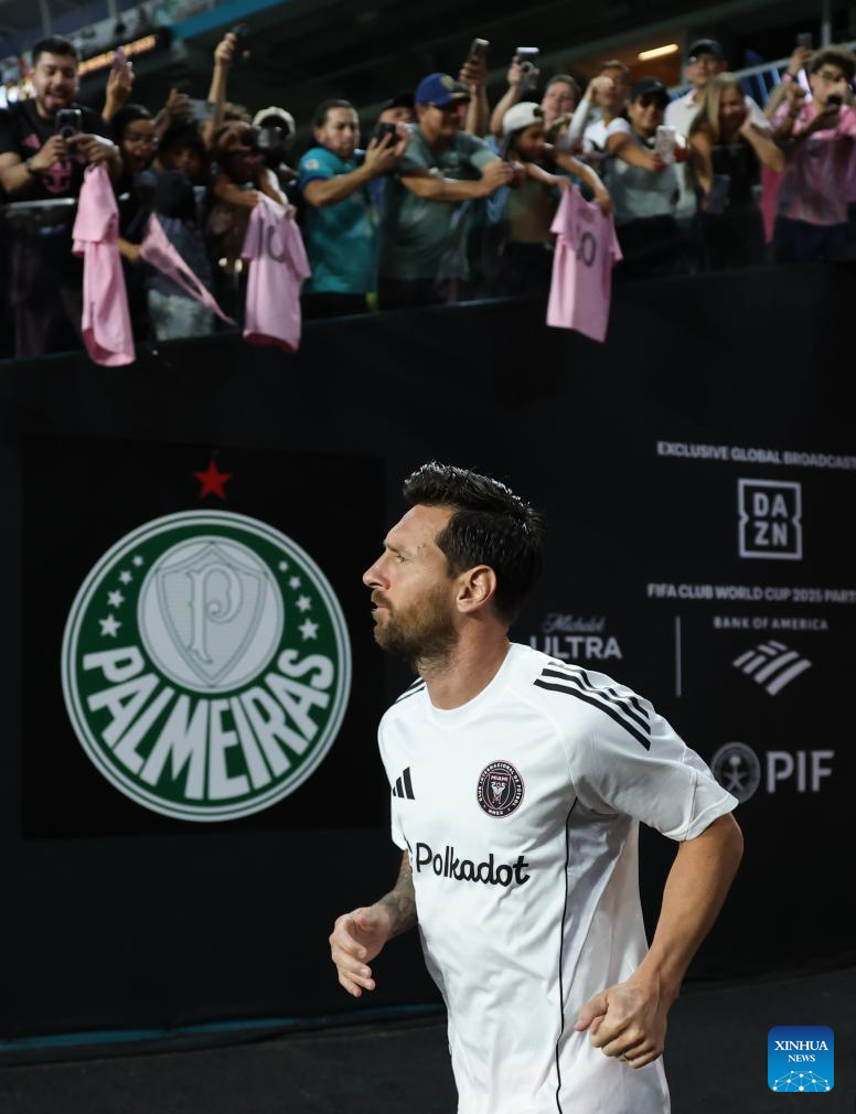 Inter Miami CF's Lionel Messi runs onto the field before the group A match between Inter Miami CF of the United States and Palmeiras of Brazil at the FIFA Club World Cup 2025 at the Hard Rock Stadium, Miami, the United States, June 23, 2025. (Xinhua/Li Ming)