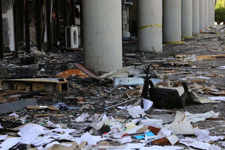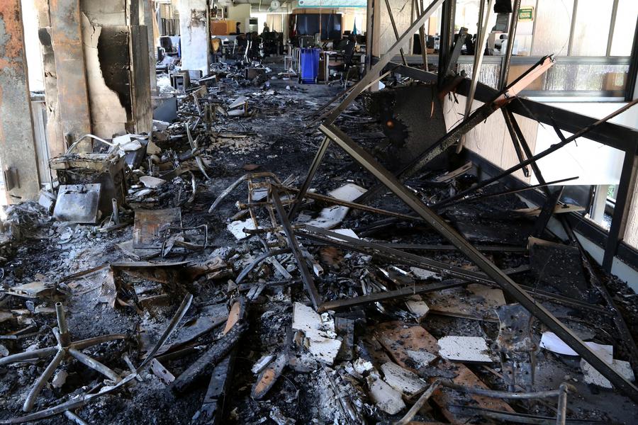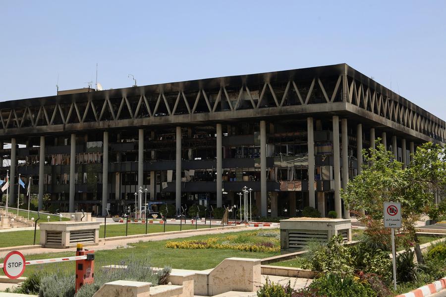 This photo taken on June 19, 2025 shows the scene after the attack on a building of Iran's state broadcaster IRIB in Tehran, Iran. (Xinhua)