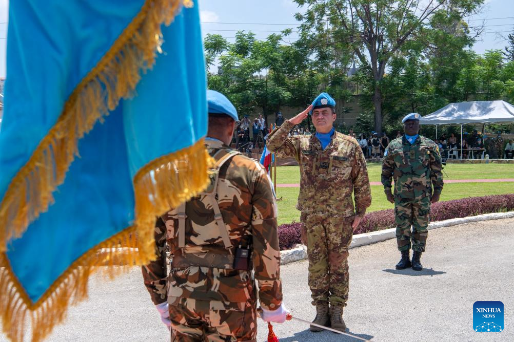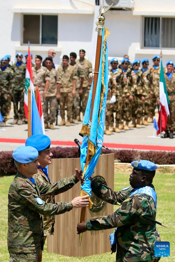 This photo shows the handover ceremony of United Nations Interim Force in Lebanon (UNIFIL) held in Naqoura, Lebanon, on June 24, 2025.