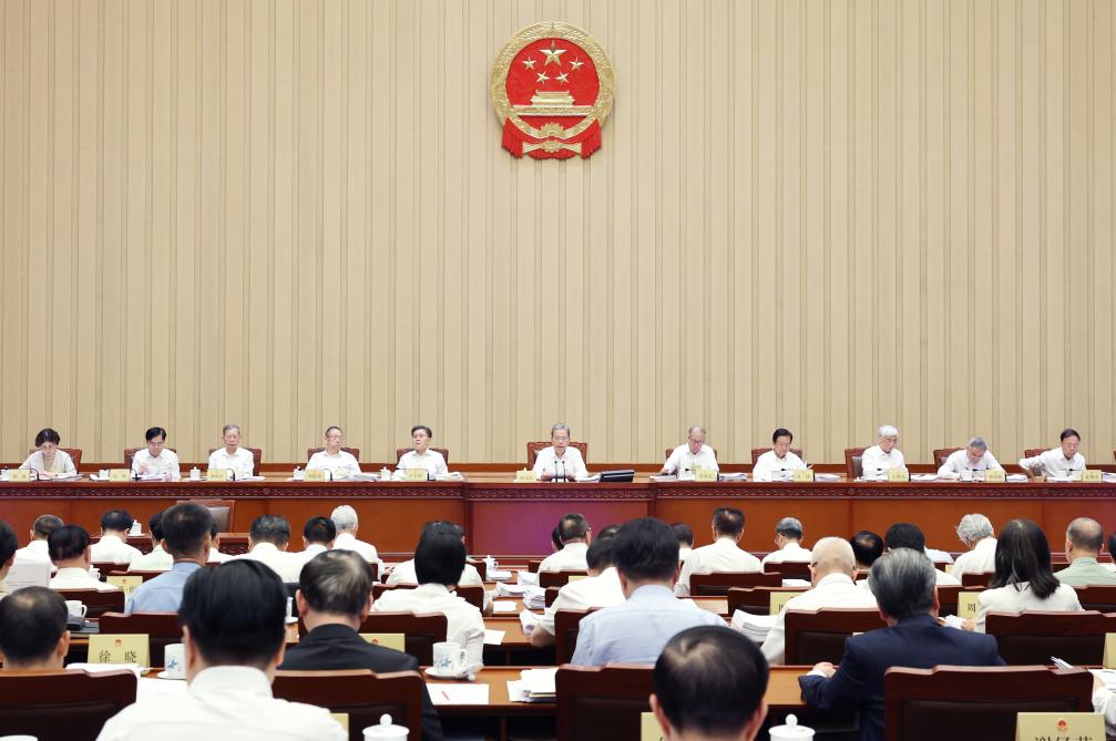 Zhao Leji, chairman of the 14th National People's Congress (NPC) Standing Committee, presides over the first plenary meeting of the committee's 16th session at the Great Hall of the People in Beijing, capital of China, June 24, 2025. (Xinhua/Yao Dawei)