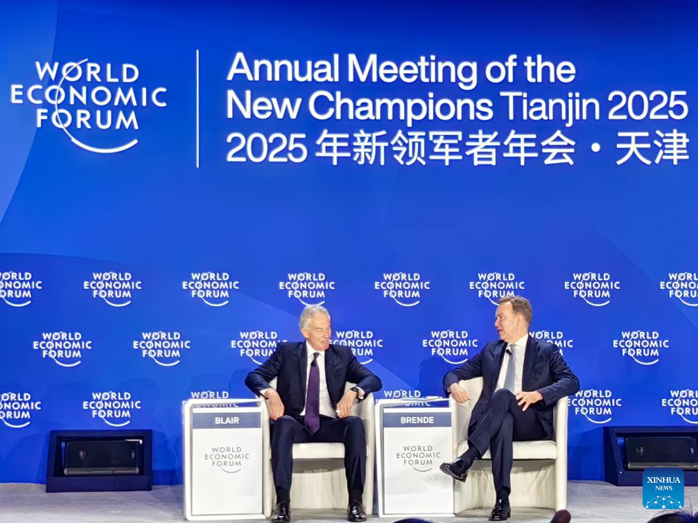 Former British Prime Minister Tony Blair attends the 2025 Summer Davos Forum in north China's Tianjin Municipality, June 24, 2025. (Xinhua/Li Kun)