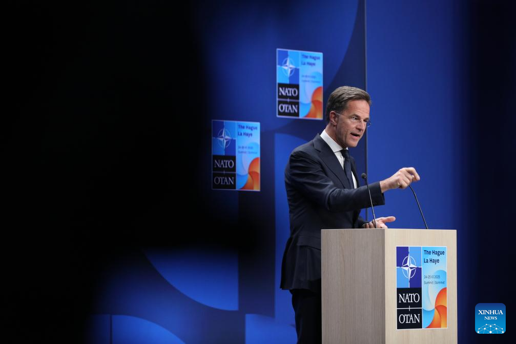North Atlantic Treaty Organization (NATO) Secretary General Mark Rutte meets the press before the NATO Summit in The Hague, the Netherlands, June 23, 2025. The NATO summit is scheduled to be held in The Hague from June 24 to 25 this year. (Xinhua/Peng Ziyang)