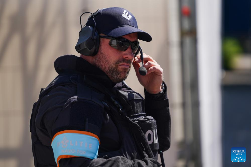 The security forces are on duty outside the venue of the North Atlantic Treaty Organization (NATO) summit in The Hague, the Netherlands, June 23, 2025. The NATO summit is scheduled to be held in The Hague from June 24 to 25 this year. (Xinhua/Peng Ziyang)