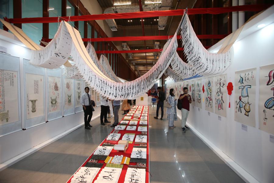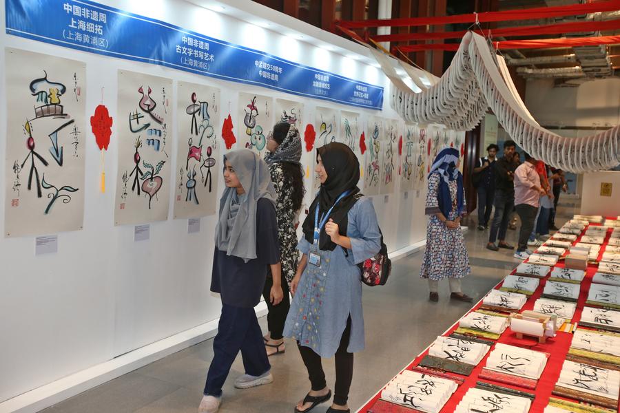 DHAKA, June 24 (Xinhua) -- An art exhibition in celebration of the China Intangible Cultural Heritage Week was held at BRAC University in the Bangladeshi capital starting from Sunday. The exhibition, a main part of the five-day event, featured dozens of outstanding Chinese artworks, including elegant lady paintings and Dongba pictographic calligraphy, as well as some Chinese intangible cultural heritage crafts.