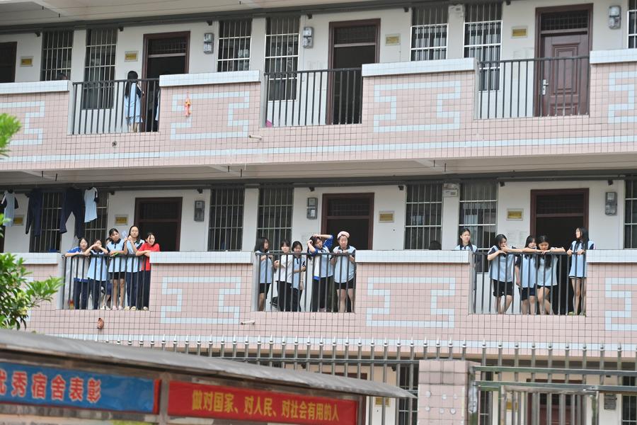 NANNING, June 24 (Xinhua) -- More than 400 ninth-grade students and 30 teachers were evacuated Monday, one day before the senior high school entrance examination, as days of torrential rains triggered flooding at an exam venue in Guangxi Zhuang Autonomous Region in south China.