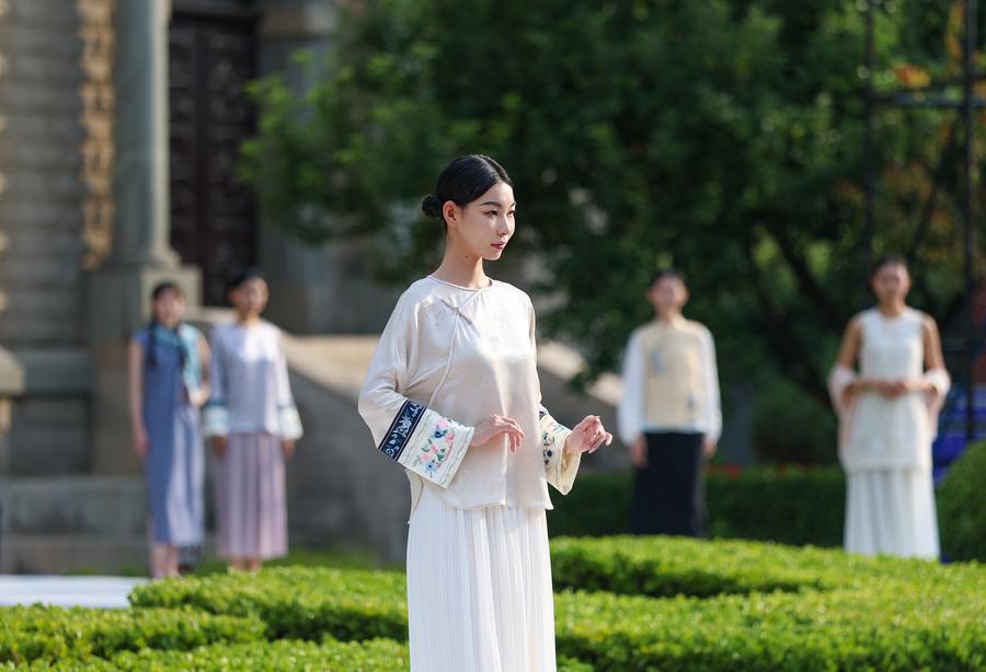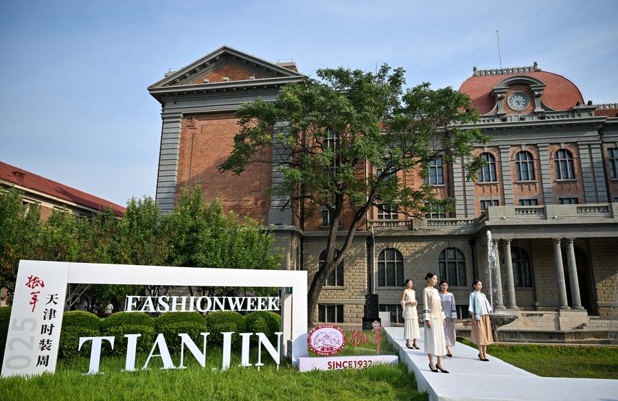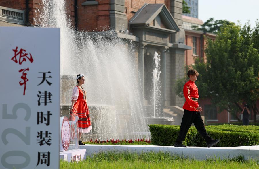 Xinhua correspondent Smiley presents a creation from Chinese brand Diyang during Tianjin Fashion Week in Tianjin, north China, June 20, 2025. (Xinhua/Sun Fanyue)A model presents a creation from Chinese brand Diyang during Tianjin Fashion Week in Tianjin, north China, June 20, 2025. (Xinhua/Sun Fanyue)Models present creations from Chinese brand Diyang during Tianjin Fashion Week in Tianjin, north China, June 20, 2025. (Xinhua/Sun Fanyue)A drone photo taken on June 20, 2025 shows models presenting creations during Tianjin Fashion Week in Tianjin, north China. (Xinhua/Sun Fanyue)Models present Russian costumes during Tianjin Fashion Week in Tianjin, north China, June 20, 2025. (Xinhua/Sun Fanyue)