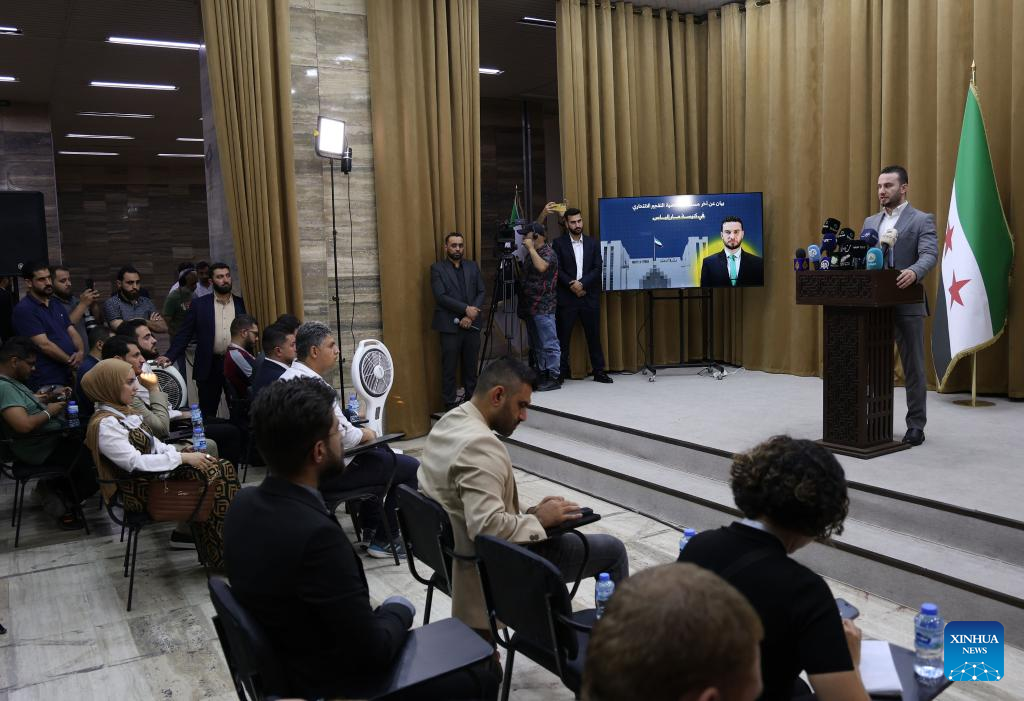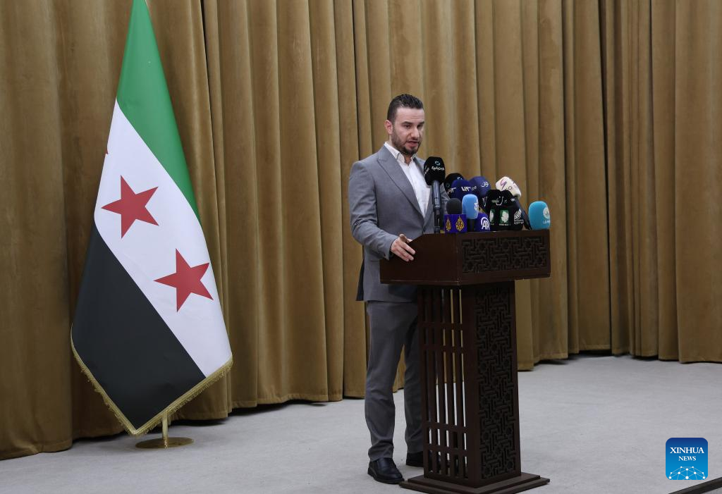 Spokesman of Syrian interior authorities Noureddin al-Baba speaks at a press conference in Damascus, Syria, on June 24, 2025. The Islamic State (IS) group and remnants of other extremist factions remain the biggest security challenge to Syria, spokesman of Syrian interior authorities Noureddin al-Baba said Tuesday, following the arrest of suspects linked to a deadly suicide bombing at Mar Elias Church in Damascus. (Photo by Ammar Safarjalani/Xinhua)