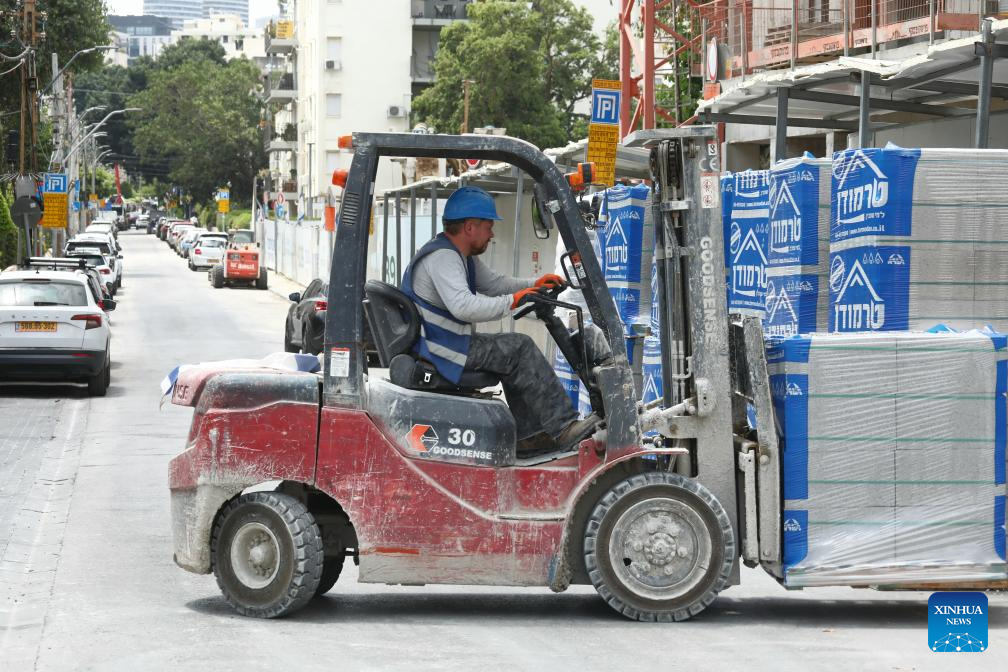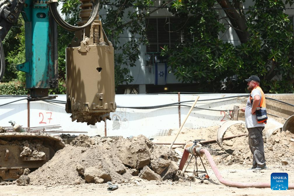 A worker is pictured at a construction site after a ceasefire between Iran and Israel took effect in Tel Aviv, central Israel, on June 24, 2025. (Gideon Markowicz/JINI via Xinhua)