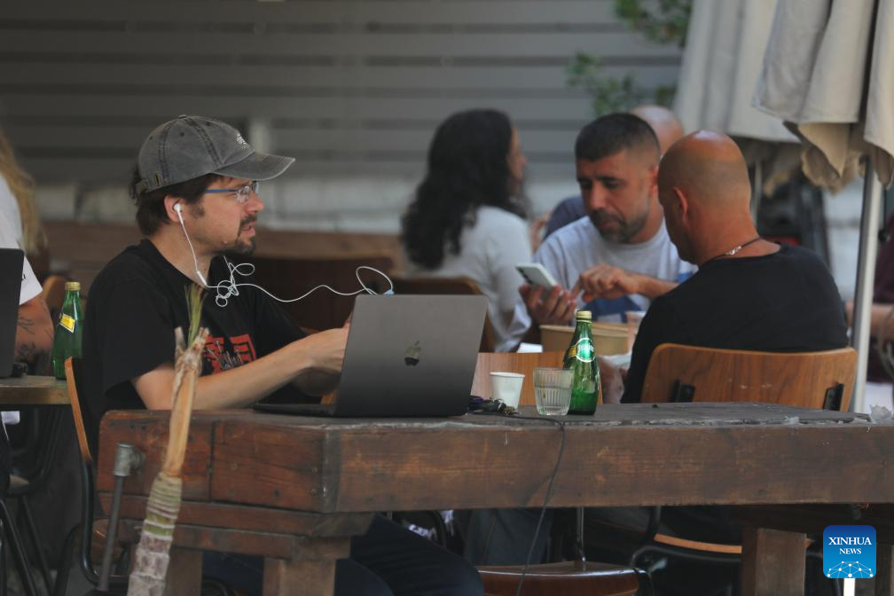 People enjoy themselves after a ceasefire between Iran and Israel took effect in Tel Aviv, central Israel, on June 24, 2025. (Gideon Markowicz/JINI via Xinhua)