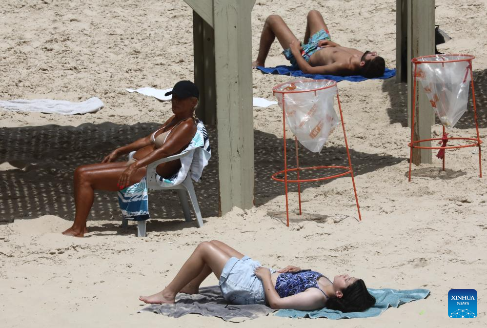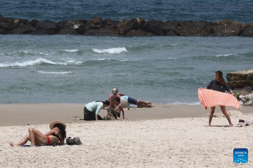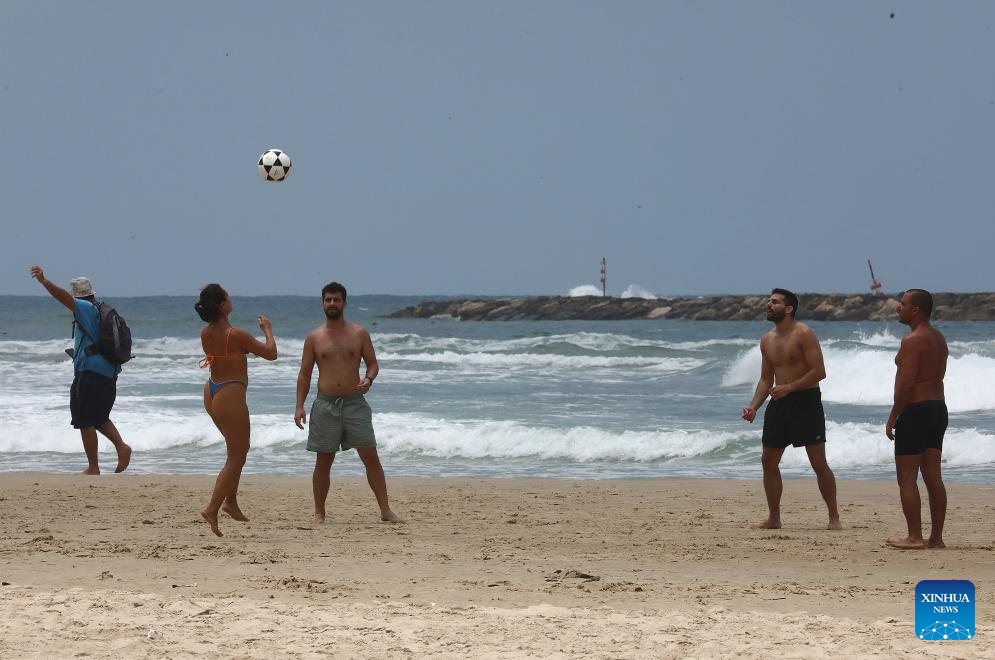 People enjoy themselves at a beach after a ceasefire between Iran and Israel took effect in Tel Aviv, central Israel, on June 24, 2025. (Gideon Markowicz/JINI via Xinhua)