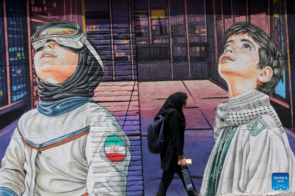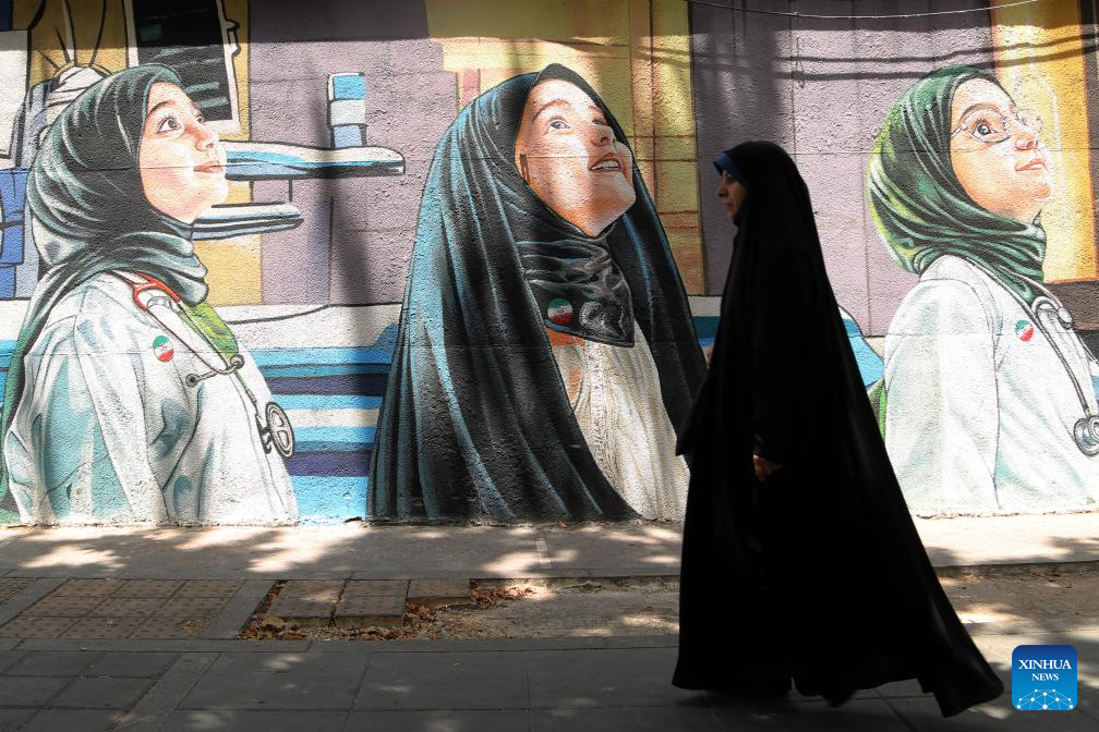 (250624) -- TEHRAN, June 24, 2025 (Xinhua) -- A woman walks on a street after a ceasefire between Iran and Israel took effect in Tehran, Iran, on June 24, 2025. (Xinhua)
