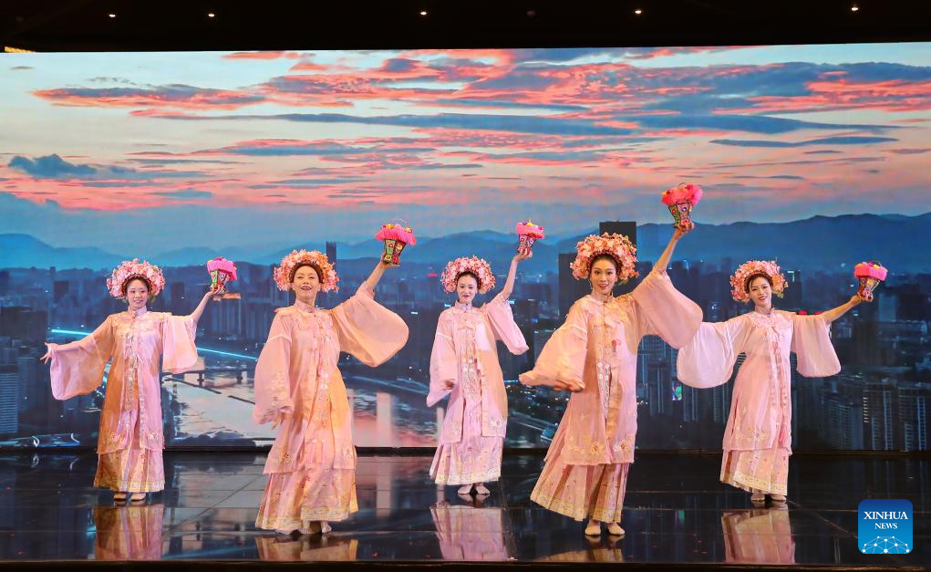 Artists stage a performance during a cultural and tourism promotion event for southeast China's Fujian Province, in Cairo, Egypt, June 24, 2025. (Xinhua/Wang Dongzhen)
