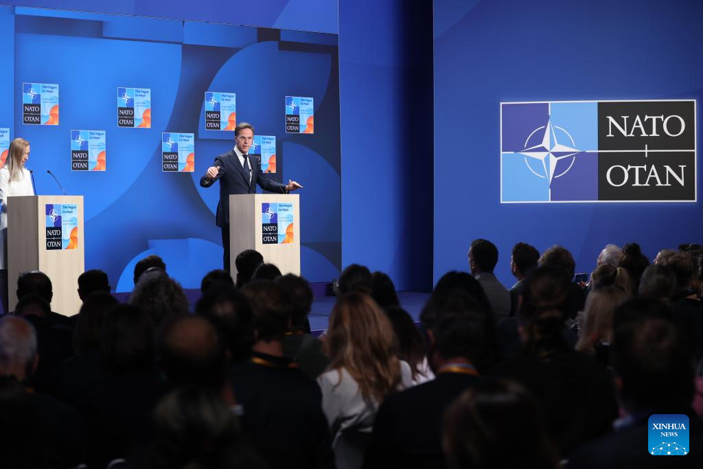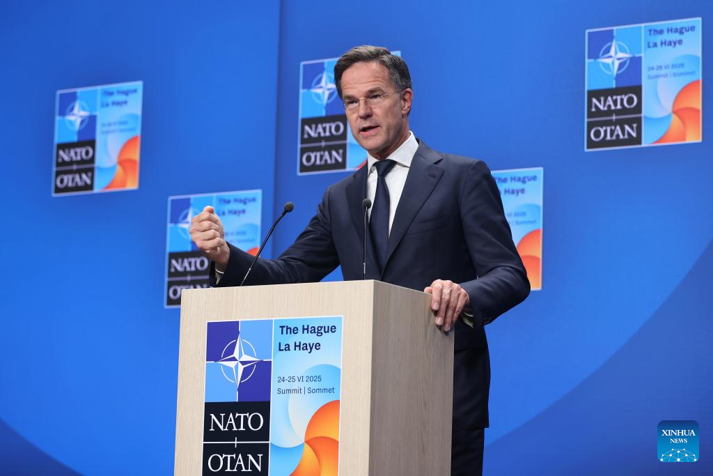 North Atlantic Treaty Organization (NATO) Secretary General Mark Rutte attends a press conference during the NATO summit in The Hague, the Netherlands, June 25, 2025. Member states of the NATO have agreed to raise their defense spending to 5 percent of gross domestic product (GDP) annually by 2035, according to a declaration issued on Wednesday following the high-level summit in The Hague. (Xinhua/Zhao Dingzhe)