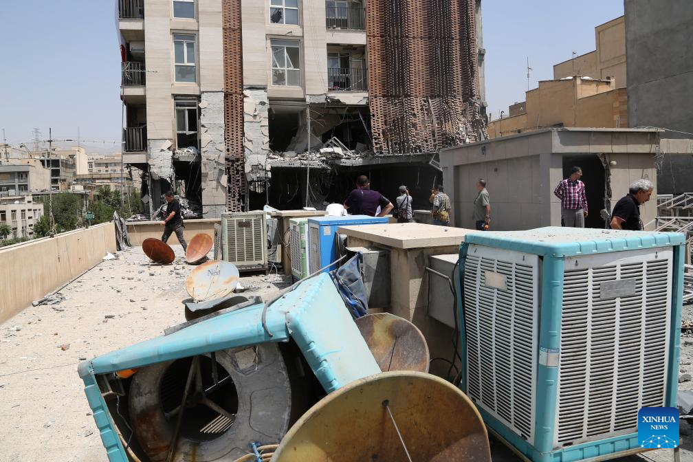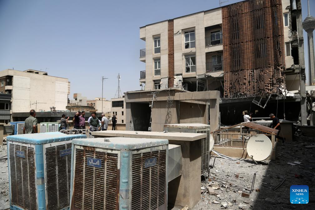 People inspect inside a building damaged during Israeli airstrikes in Tehran, Iran, June 25, 2025. (Xinhua)