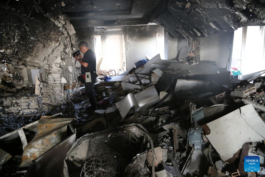 This photo taken on June 25, 2025 shows a view inside a building damaged during Israeli airstrikes in Tehran, Iran, June 25, 2025. (Xinhua)