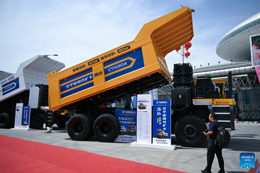 A hybrid mining truck is pictured during the 2025 (China) Eurasia Commodity and Trade Expo in Urumqi, northwest China's Xinjiang Uygur Autonomous Region, June 26, 2025.