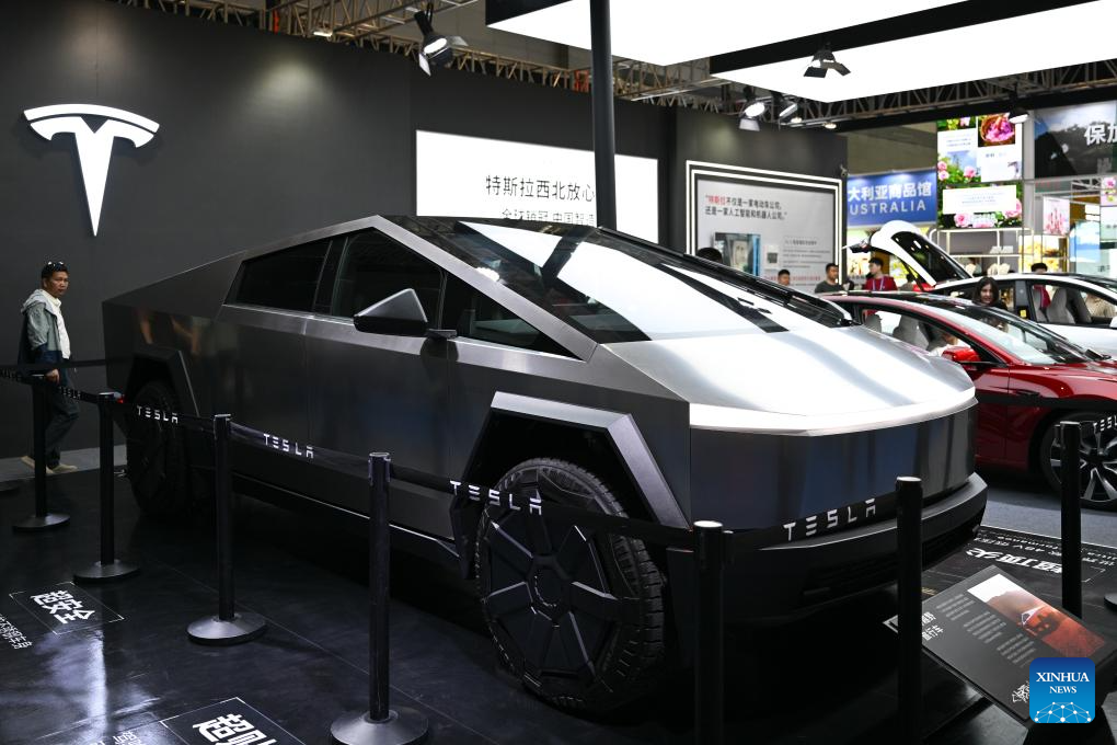 A Tesla Cybertruck is pictured during the 2025 (China) Eurasia Commodity and Trade Expo in Urumqi, northwest China's Xinjiang Uygur Autonomous Region, June 26, 2025.