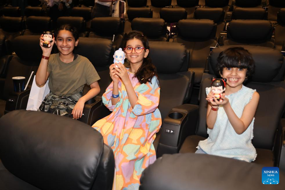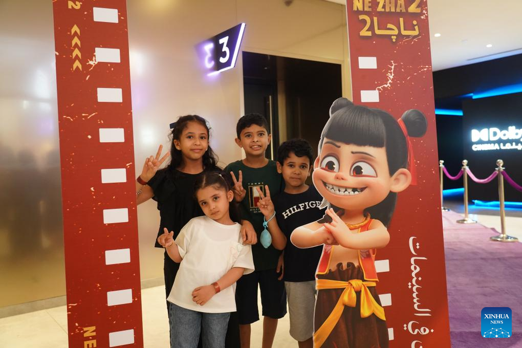 Children pose for a photo after the premiere of Chinese animated blockbuster "Ne Zha 2" in Riyadh, Saudi Arabia on June 25, 2025. (Xinhua/Wang Haizhou)