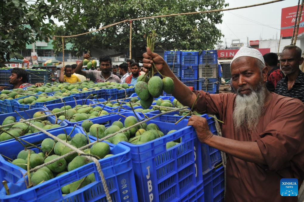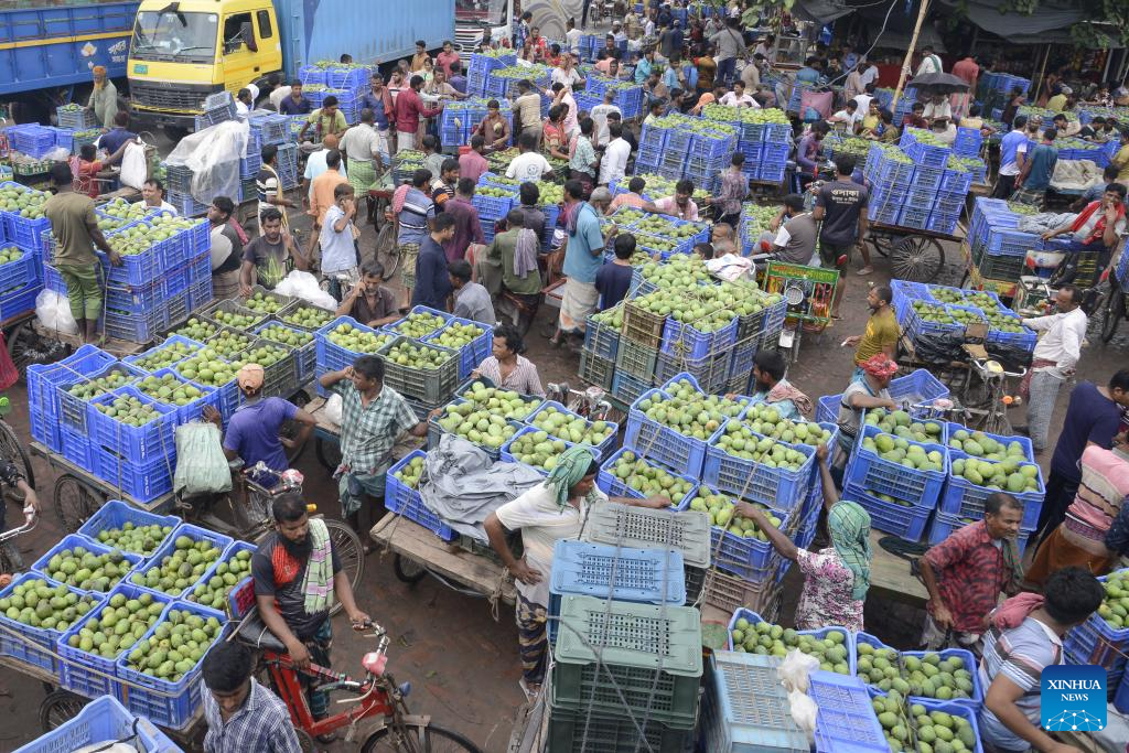 This photo taken on June 25, 2025 shows a mango wholesale market in Rajshahi, Bangladesh. Rajshahi is famous for producing high-quality mangoes across Bangladesh during the mango season from May to August. (Xinhua)