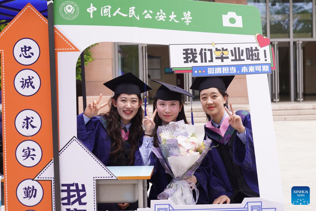 Graduates pose for a group photo after the graduation ceremony at People's Public Security University of China (PPSUC) in Beijing, capital of China, June 26, 2025. (Xinhua/Dai Mingxuan)