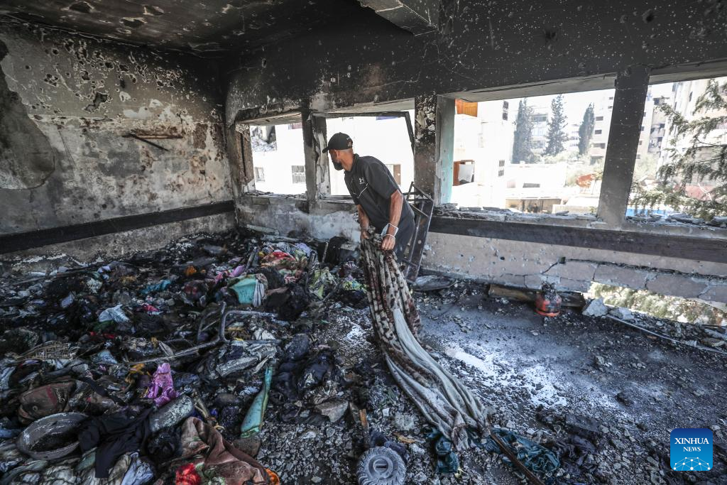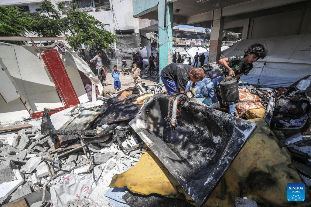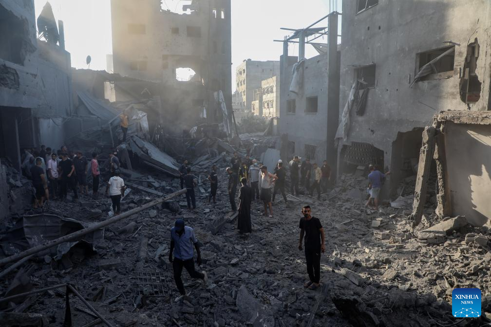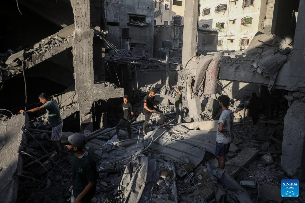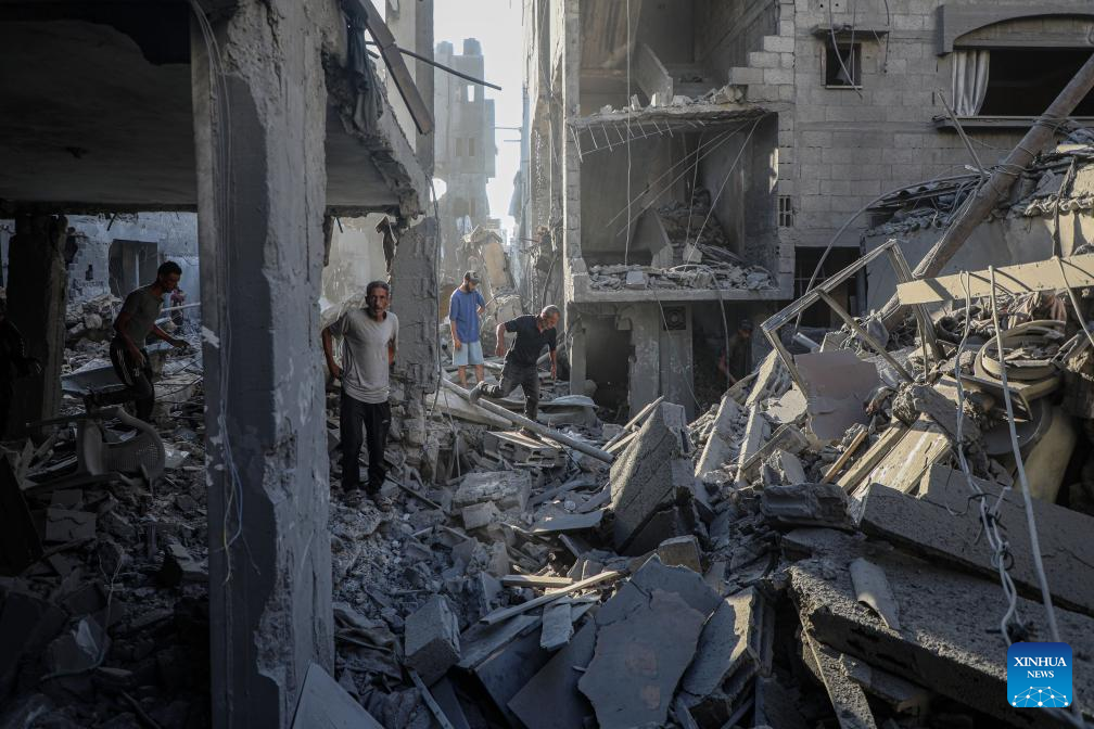 Palestinians collect items from the rubble after an Israeli airstrike in Gaza City, on June 27, 2025. At least 40 Palestinians were killed by Israeli gunfire and shelling across the Gaza Strip on Friday, Palestinian sources said. (Photo by Mahmoud Zaki/Xinhua)