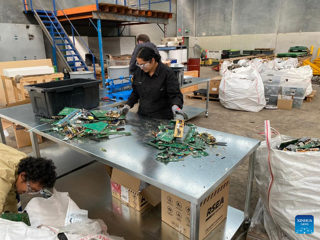 Researchers process electronic waste at Flinders University in Adelaide, South Australia, May 3, 2022. (Flinders University/Handout via Xinhua)