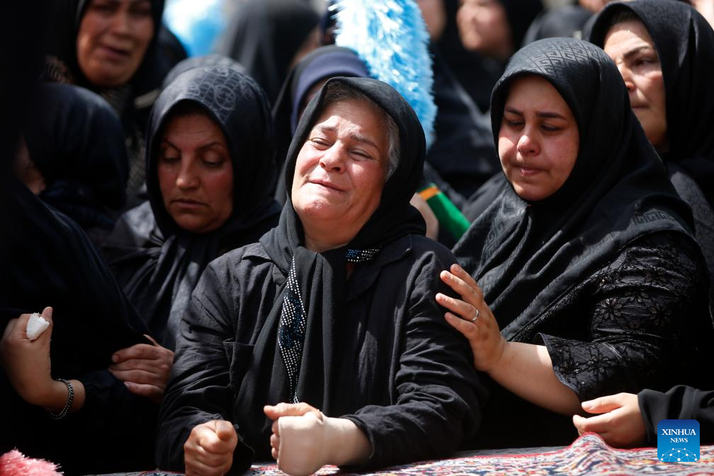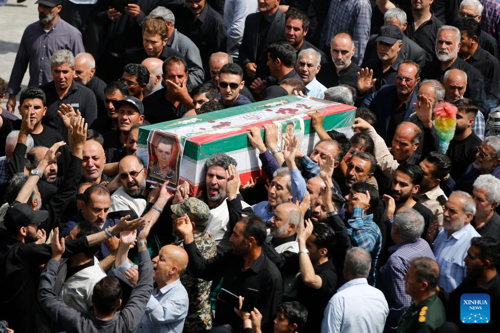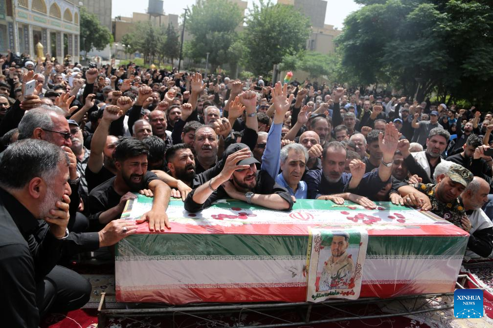 People attend a funeral for Mahan Setareh, a member of Islamic Revolutionary Guard Corps, who was killed in Israeli attacks on Iran, in Tehran, Iran, June 26, 2025. (Xinhua)