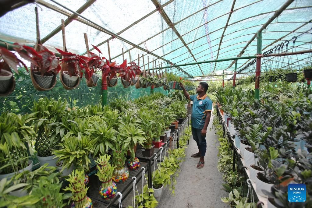 A gardener works at the National Tree Fair 2025 in Dhaka, Bangladesh, on June 26, 2025. Bangladesh inaugurated the National Tree Plantation Campaign and Tree Fair 2025 on Wednesday. (Photo by Habibur Rahman/Xinhua)