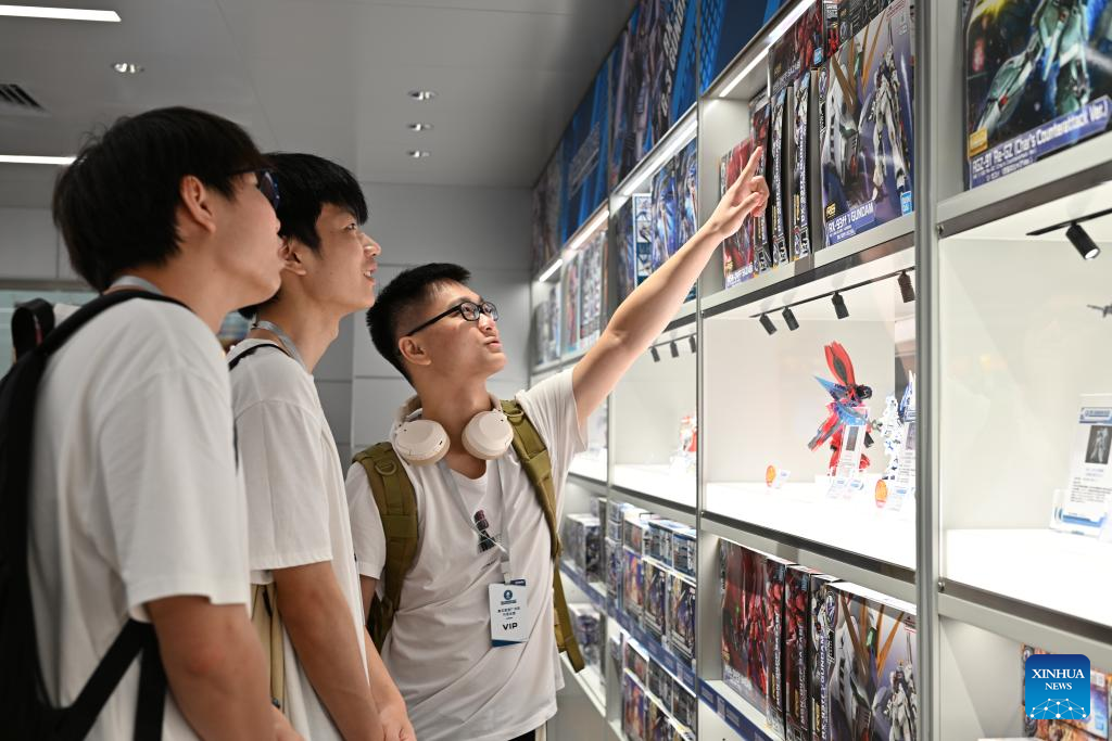 Visitors select products at a Gundam Base flagship store in Guangzhou, south China's Guangdong Province, June 26, 2025. The largest Gundam Base flagship store in the Chinese mainland officially opened Friday in the southern metropolis of Guangzhou, offering an immersive experience for Gundam model enthusiasts. (Xinhua/Huo Siying)