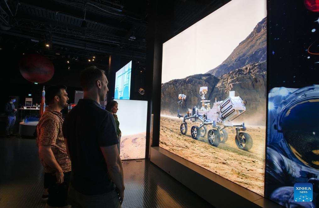 Visitors view an image of a Mars rover during the "Artemis Space Adventure with LEGO Bricks" exhibition at Science World in Vancouver, British Columbia, Canada, June 26, 2025. The exhibition kicked off here on Thursday and runs until April 6, 2026. (Photo by Harrison Ha/Xinhua)
