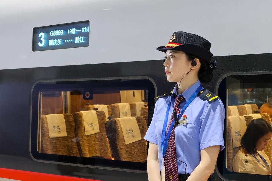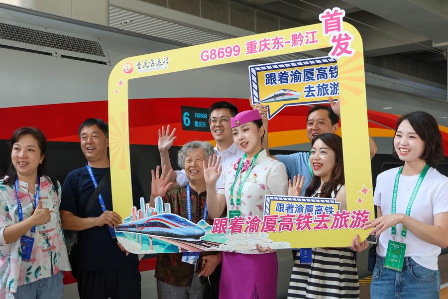 An aerial drone photo shows a high-speed train running on a railway bridge on the Chongqing section of the Chongqing-Xiamen high-speed railway, in southwest China's Chongqing, June 27, 2025. (Photo by Zhang Kai/Xinhua)An aerial drone photo shows a high-speed train running on a railway bridge on the Chongqing section of the Chongqing-Xiamen high-speed railway, in southwest China's Chongqing, June 27, 2025. (Photo by Huang Jiji/Xinhua)Passengers and staff members pose for a photo before boarding a high-speed train at a platform of the Chongqing East Railway Station in southwest China's Chongqing, June 27, 2025. (Xinhua/Lei Mingyu)A high-speed train arrives at the Qianjiang Railway Station on the Chongqing section of the Chongqing-Xiamen high-speed railway, in southwest China's Chongqing, June 27, 2025. (Xinhua/Lei Mingyu)An aerial drone photo shows a high-speed train running on a railway bridge on the Chongqing section of the Chongqing-Xiamen high-speed railway, in southwest China's Chongqing, June 27, 2025. (Photo by Lu Dongyue/Xinhua)A railway stewardess works at a platform of the Chongqing East Railway Station in southwest China's Chongqing, June 27, 2025. (Xinhua/Lei Mingyu)This photo shows a view of the Chongqing East Railway Station in southwest China's Chongqing, June 27, 2025. (Xinhua/Tang Yi)This photo shows a view of the Chongqing East Railway Station in southwest China's Chongqing, June 27, 2025. (Xinhua/Tang Yi)An aerial drone photo shows a high-speed train pulling out of the Chongqing East Railway Station in southwest China's Chongqing, June 27, 2025. (Xinhua/Tang Yi)■