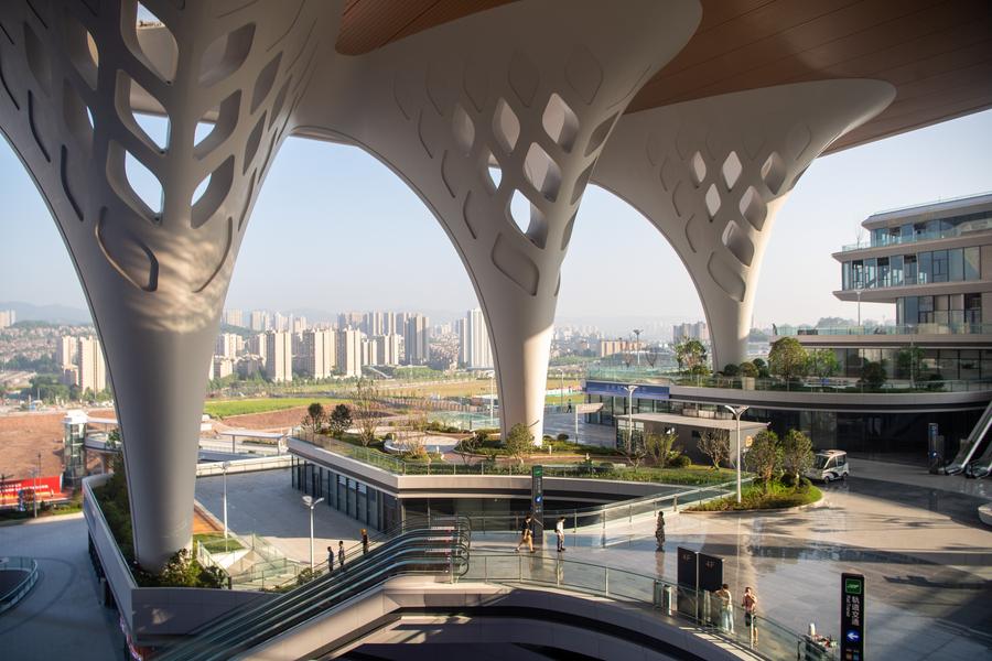 This photo shows a view of the Chongqing East Railway Station in southwest China's Chongqing, June 27, 2025. (Xinhua/Tang Yi)