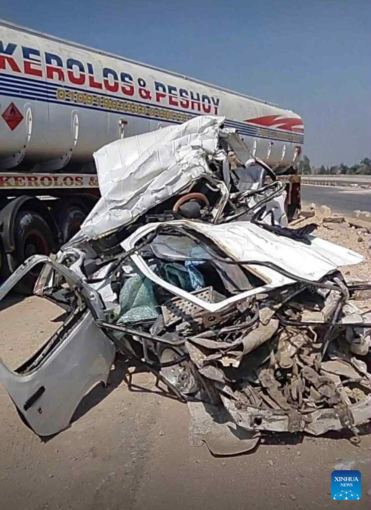 This photo taken on June 27, 2025 shows the site of a road accident on a highway in Menoufia Governorate, Egypt. (Xinhua)