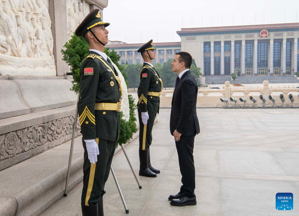 Ecuadorian president lays wreath at Monument to People's Heroes on Tian'anmen Square-Xinhua