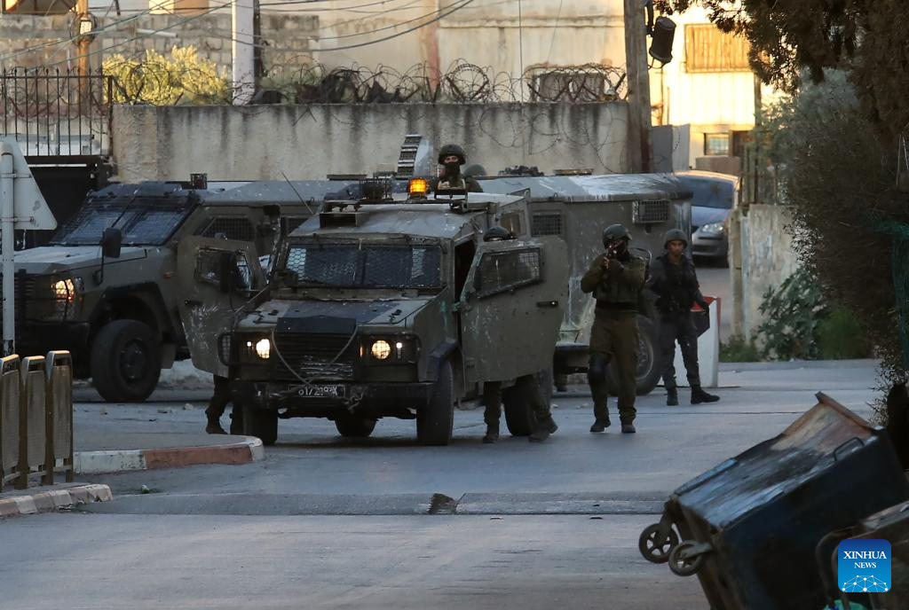 An Israeli soldier aims at Palestinian protesters during clashes in the West Bank city of Nablus, on June 27, 2025. (Photo by Nidal Eshtayeh/Xinhua)