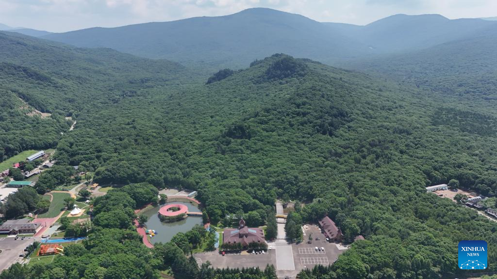 An aerial drone photo taken on June 27, 2025 shows forest landscape at Toulongshan scenic area in Yichun City, northeast China's Heilongjiang Province. Nestled in the heartland of China's Lesser Khingan Mountains, Yichun City ushers in its peak season for summer tourism. From January to May this year, Yichun saw a 26.6 percent year-on-year increase in tourist visits. (Photo by Gu Jingkun/Xinhua)