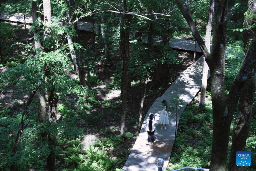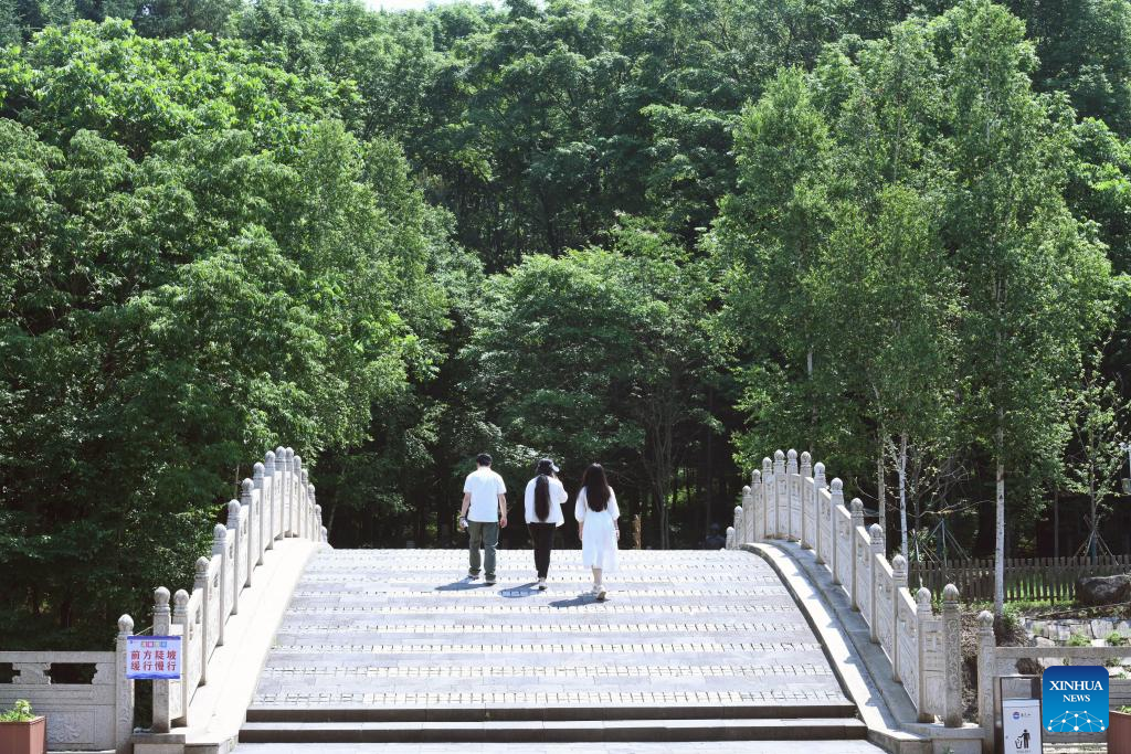 Tourists visit Toulongshan scenic area in Yichun City, northeast China's Heilongjiang Province, on June 27, 2025. Nestled in the heartland of China's Lesser Khingan Mountains, Yichun City ushers in its peak season for summer tourism. From January to May this year, Yichun saw a 26.6 percent year-on-year increase in tourist visits. (Xinhua/Wang Song)