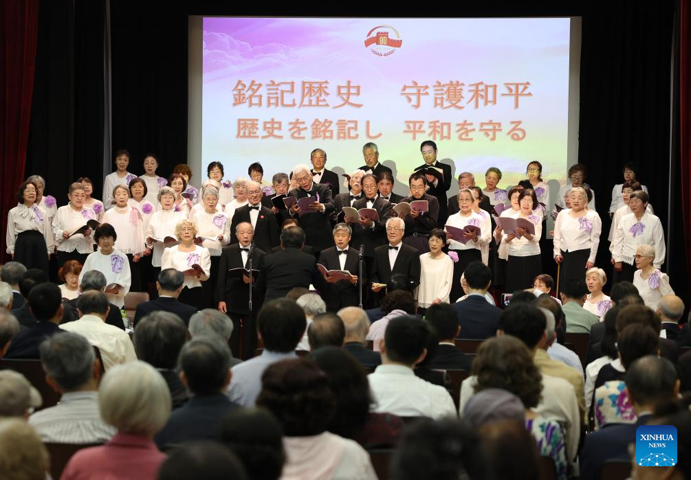 Members of a Japanese chorus sing during a reception themed "Remembering History, Safeguarding Peace" at the Chinese embassy in Japan, Tokyo, Japan, June 25, 2025. The reception was held here on Wednesday to mark the 80th anniversary of the victory in the Chinese People's War of Resistance Against Japanese Aggression and the World Anti-Fascist War. The commemorative event brought together over 300 participants, including representatives from more than 30 Japanese peace and friendship organizations, to remember history, honor the fallen heroes, cherish peace, and create a better future. (Xinhua/Jia Haocheng)