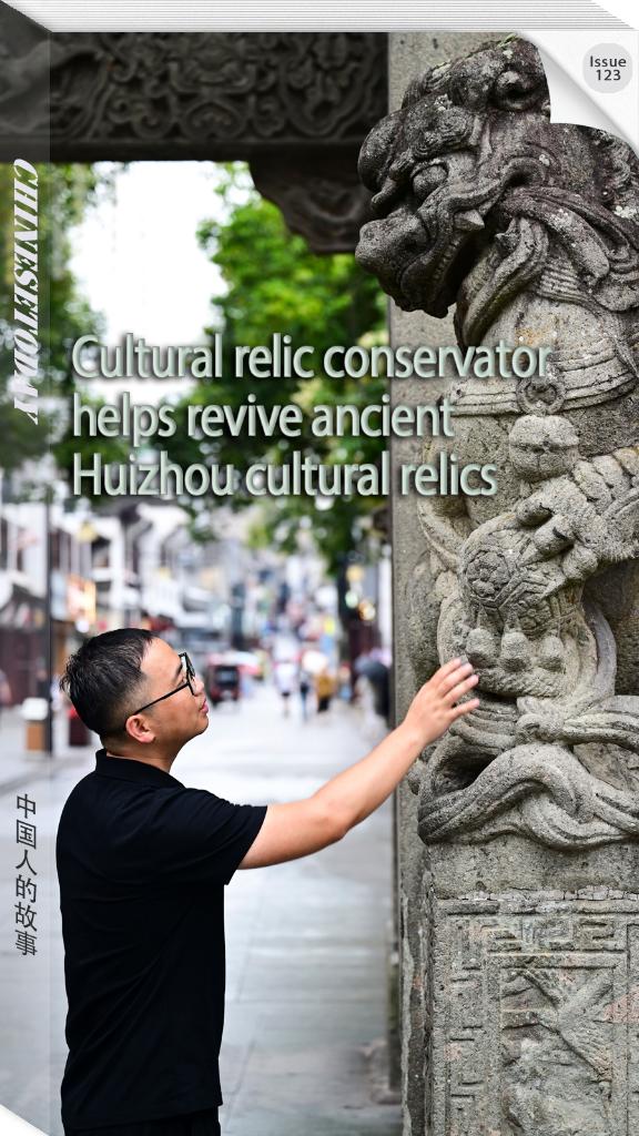 Zhou Hu, 33, graduated with a degree in archaeology from Anhui University. Passionate about Huizhou culture, he joined in Shexian County's cultural relics conservation efforts after completing his postgraduate studies in 2016. He now serves as the deputy director of the county's cultural relics center.