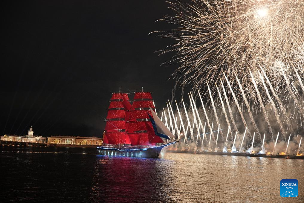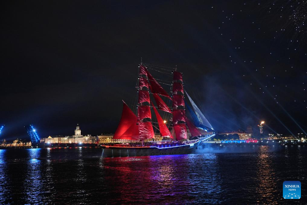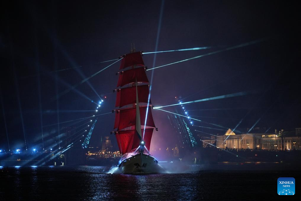 ST. PETERSBURG, June 29 (Xinhua) -- From Saturday night into early Sunday morning, the Russian city of St. Petersburg hosted its annual Scarlet Sails festival, a grand celebration marking the graduation of high school students.
