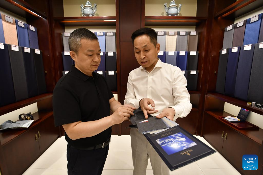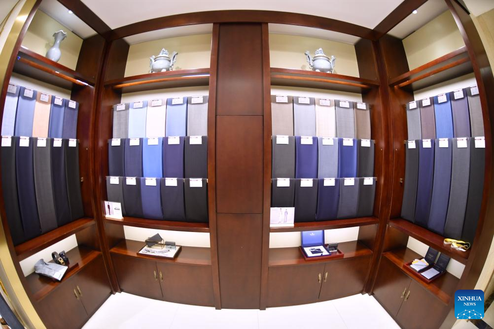 Nowadays, Longqingxiang has become a comprehensive clothes making company which offers services from designing, innovation, production to selling. It has also adopted digital technologies such as 3D in material selecting, style designing and body size measuring. Besides applying modern equipment, it keeps traditional handwork and the "27-step" body size measuring method in its clothes making. Every customized western-style clothes of Longqingxiang will go through 406 making procedures before reaching the customer. The company also owns 34 patents in outlooks and functions, opening branches across the country and receiving orders from Middle East and Southeast Asia. Every March and August, Longqingxiang holds its Spring/Summer and Autumn/Winter new products launches. On Aug. 7 of 2022, it even showcased its fashion designs on the Great Wall. Combining traditional and modern tastes, integrating Chinese and western cultures, Longqingxiang is now leading the trend of Chinese customized brand. (Xinhua/Li Xin)