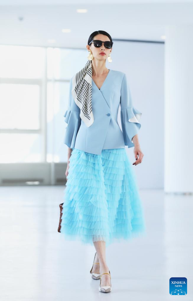 This file photo taken in 2023 shows a model presenting creations of Longqingxiang during the brand's fashion launch. (Xinhua)