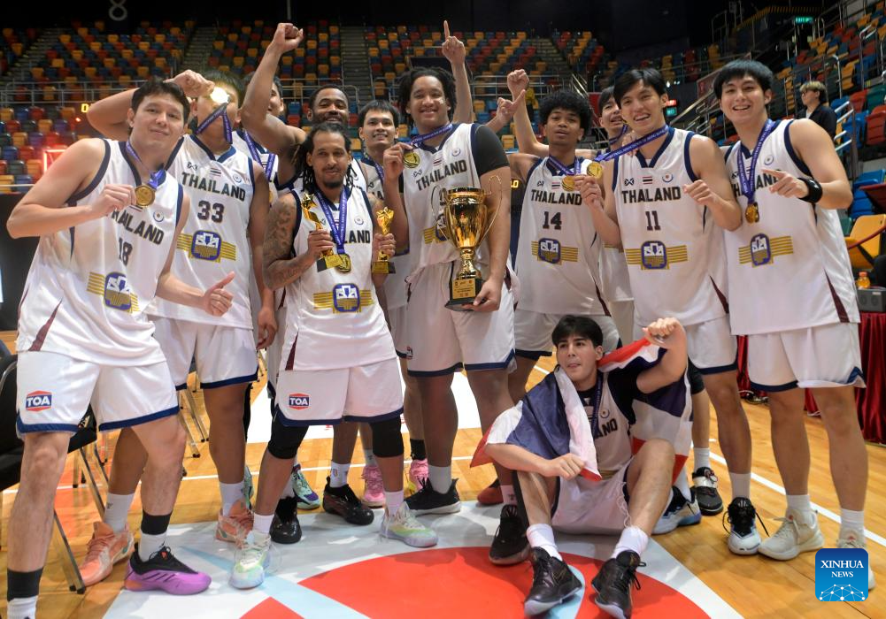 Players of Thailand pose after the awarding ceremony for the Super Kung Sheung International Basketball Invitation Championship final match between Thailand and Fujian Jinjiang Culture & Tourism in Hong Kong, China, June 29, 2025. (Xinhua/Lo Ping Fai)